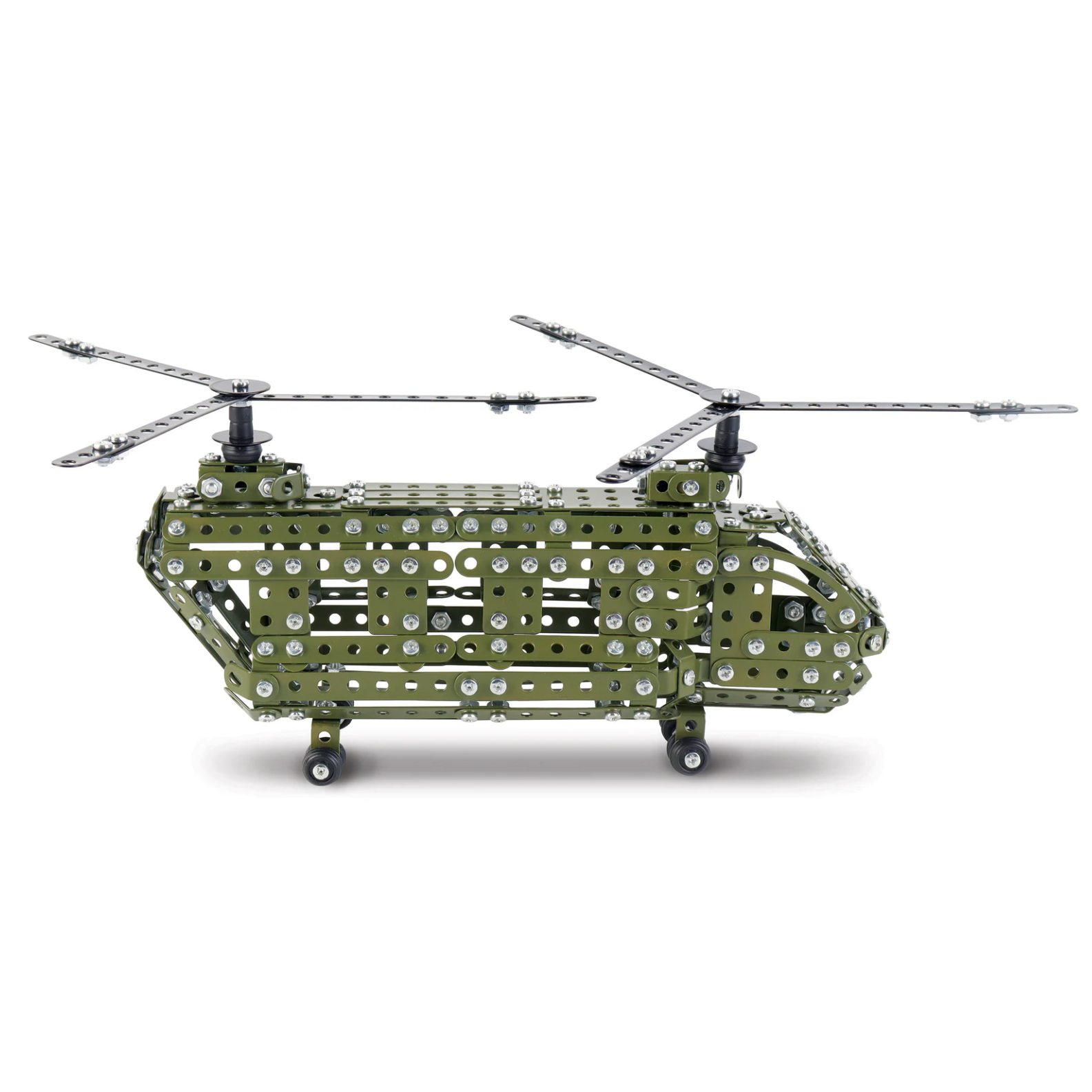 Take to the skies with this impressive Chinook Helicopter Metal Construction Set, renowned for its tandem rotor design, allowing it to carry heavy payloads of 10 tons, making it one of the most powerful and versatile helicopters in the world.