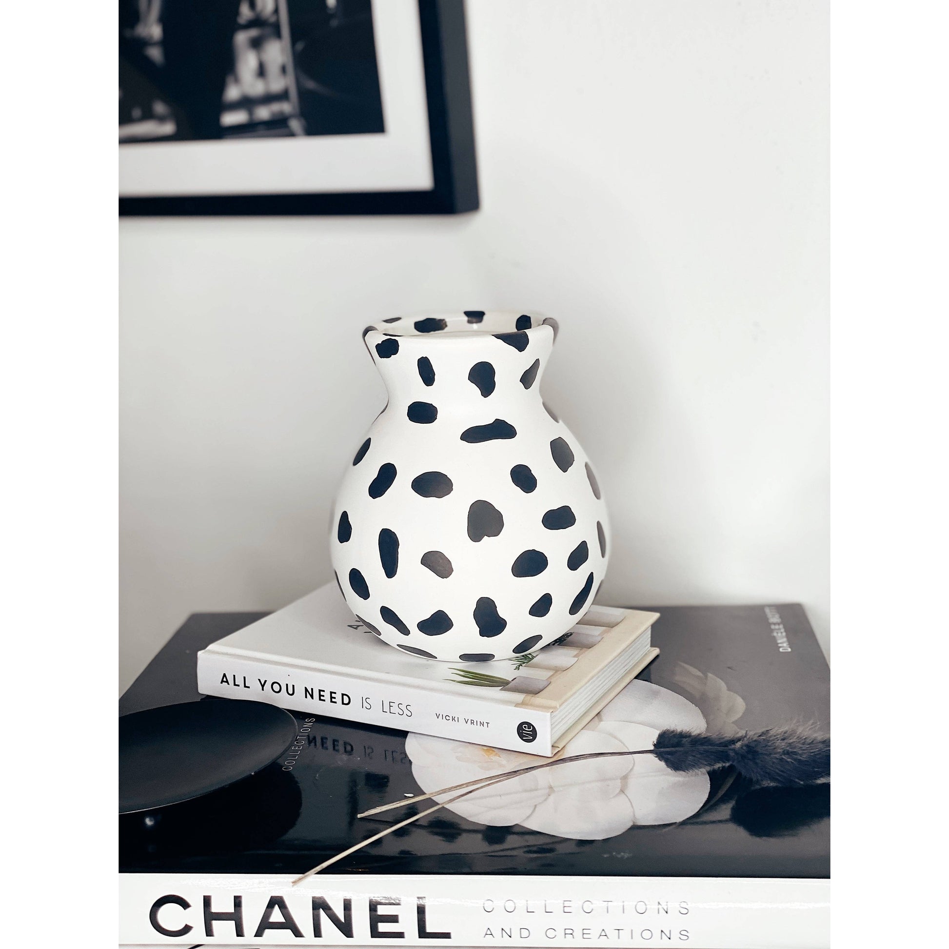 Featuring a fashionable Dalmatian print design the bulb vase is hand painted with quality Windsor paints and crafted from watertight ceramic. A perfectly sized vase to comfortably display a bouquet of your favourite fresh flowers or a quirky ornament that can be styled on its own. Fitting for a coffee table, windowsill or fireplace. Measurements: Height: 13cm Width: 10cmDepth: 10cm **Gift wrap and personalised tag options available ** **Dont forget to tag us on Instagram, we love to see how you style our home accessories! @JasmineAliceHome**