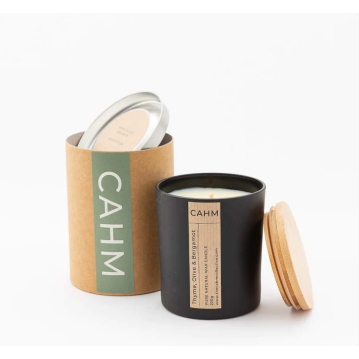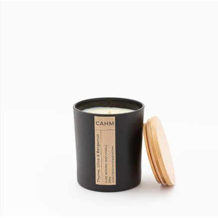 Thyme, Olive and Bergamont 220g Luxury Candle in a Black Jar