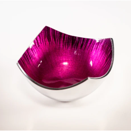 A beautiful designed dish that comes in a variety of colour options and perfect for snacks and starters, dips and olives. They are Fair Trade and hand made by Indian artisans. The products are made from recycled aluminium.