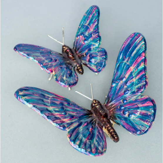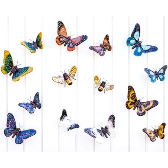 The Butterflies are a four way product, not only being a stand alone product but by buying a separate plant stake, pot stake or wall hanging attachment that can be screwed into the base of the product, they can become a plant or pot stake or a wall hanging decorative item.