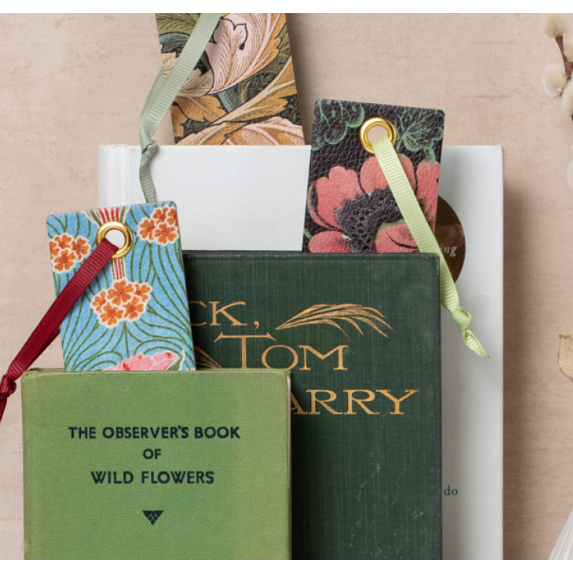 They have then been carefully printed onto superior quality faux leather, embellished with metal eyelets and gold grosgrain ribbon and finished with debossed detailing on the reverse. A better class of bookmark!